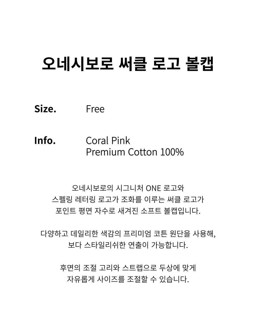 오네시보로 써클 로고 볼캡 / 코랄 핑크