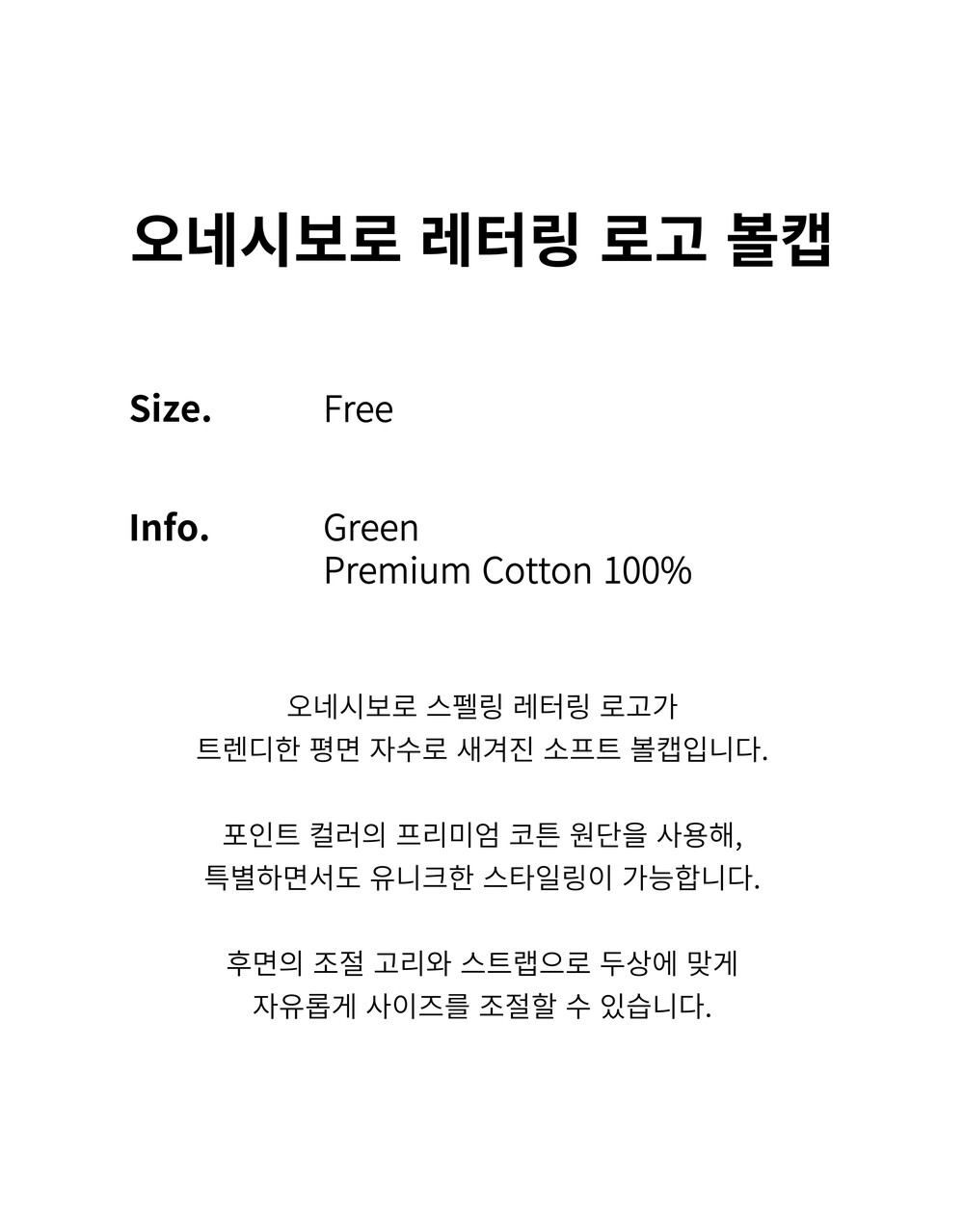 오네시보로 레터링 로고 볼캡 / 그린